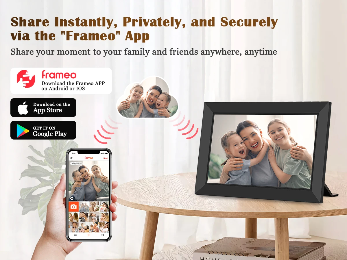 Cadre Photo Numérique Wi-Fi 10,1″ – Écran IPS | Partage à Distance via App, 16–32 Go, Portrait/Paysage